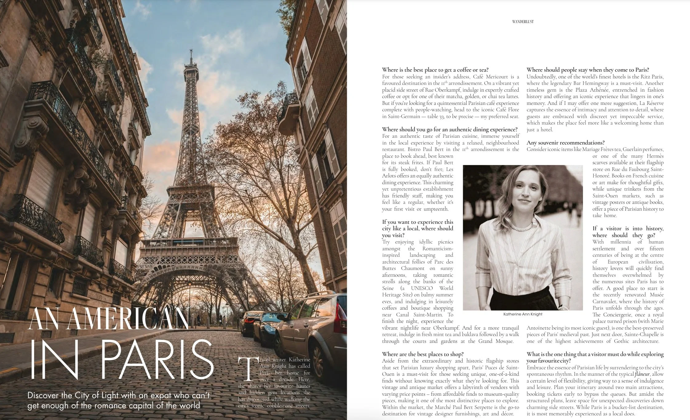 In "An American in Paris," Katherine, a Parisian native for over 12 years, blends her deep affection for Paris with practical advice for experiencing the city like a local. From sipping coffee in charming cafés to exploring hidden boutiques and enjoying leisurely strolls along the Seine, she captures the essence of Parisian life. Her guide is not just about iconic landmarks but also about the subtle joys of the city's everyday experiences.